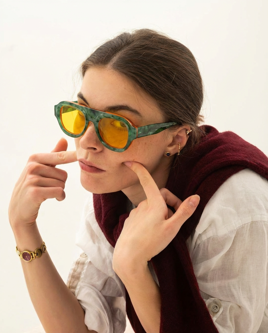 Wow! These retro aviator-style sunglasses are very stylish. They’re made from high-quality materials, and the frame feels strong and durable. The color is beautiful and elegant, and the lenses also look high quality.