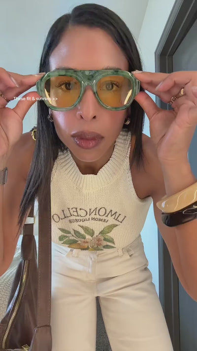 These honeybutter sunglasses look even better in person. The oversized square design is trendy and flattering, and they feel lightweight and comfortable enough to wear for long periods. They stay in place well while driving or being active outdoors without sliding down.